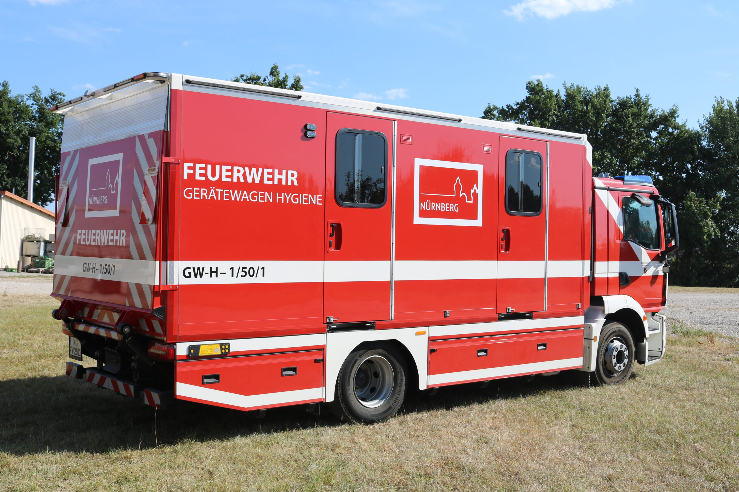 Seit dem Jahr 2025 steht der 🚛 GW-Hygiene (Gerätewagen Hygiene) der Feuerwehr Nürnberg für Einsätze bereit.