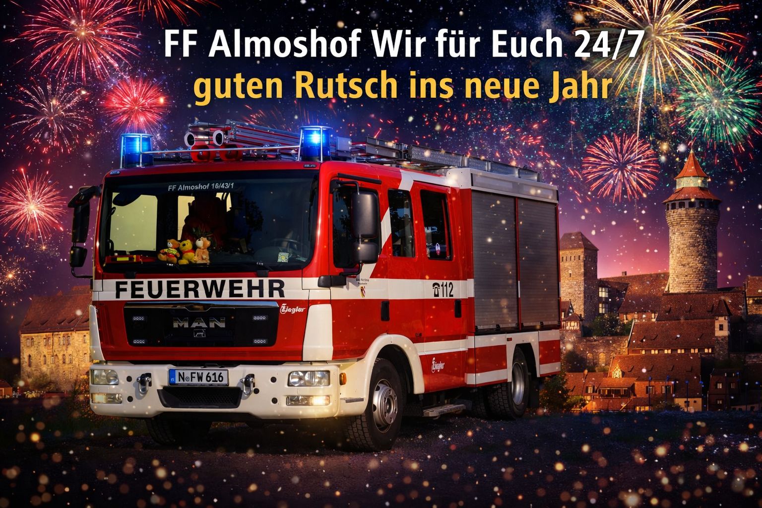 Der Löschzug Almoshof wünscht allen Bürgerinnen und Bürgern Nürnbergs ein ruhiges und besinnliches Weihnachtsfest, Gesundheit und eine sichere Zeit mit Familie und Freunden.