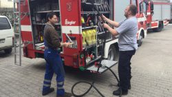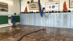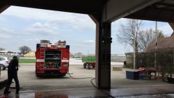 Da in zwei Wochen, am 23.04.2016, unser alljährliches Schlachtfest ansteht, musste auch die Gerätehalle dringend gereinigt werden. Bei dieser Aufgabe stellte sich heraus, dass der Schnellangriff unseres LF 10/6 nicht nur zum Löschen von Bränden geeignet ist, sondern auch beim Putzen von großem Nutzen war.