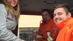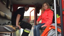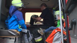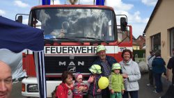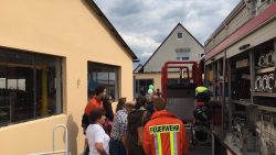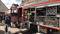 Besonders für die Kinder war es eine große Freude in einem echten Feuerwehrauto zu sitzen und den besonderen Flair der Feuerwehr zu spüren. Die Helme, Atemschutzgeräte, Leinenbeutel und Funkgeräte waren im Mannschaftsraum von größtem Interesse. Um das Löschfahrzeug herum waren der Rettungssatz und natürlich unsere Schläuche der absolute Hit.