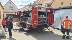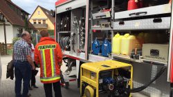 In diesem Jahr fand in Almoshof, Lohe und Kleinreuth h. d. V. wieder der Tag der offenen Tür im Knoblauchsland statt. Neben den Gartenbauern waren auch wir mit unserem LF 16/12 auf dem Anwesen Drechsler präsent. Unser LF war für die Kleinen und Großen Besucher von großem Interesse. Wir stellten von 10:00 Uhr bis 16:00 Uhr die technischen Raffinessen unseres Feuerwehrautos vor.