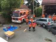 Bei so einem Unfall darf nicht viel Zeit verloren werden. So galt es zügig und geschickt das Übungsszenario abzuarbeiten. Zu nächst mussten die beiden Fahrzeuge gesichert werden, dazu wurden sie mit Rüstholz unterbaut und mit Keilen gegen Wegrollen gesichert. Während sich Feuerwehrsanitäter um die Verletzten kümmern, schaffen die anderen Kameraden einen ersten Zugang ins Fahrzeug. Das A und O bei der technischen Rettung ist die schonende Befreiung des Patienten.
