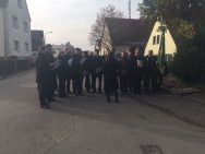 Am Kriegerdenkmal wurde deswegen von der FF Almoshof ein Kranz zum Gedenken niedergelegt. Unser Ehrenvorstand Willi Drechsler richtete mahnende Worte an die Bevölkerung und erinnerte an den Schmerz und das Leid der Weltkriege. Der Gesangsverein und unser Trompetensolist sorgten für die entsprechende Stimmung.